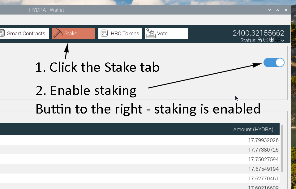 Detailed instructions how to install the Staking wallet for different Operating Systems can be found here >> Hydrachain.org/becoming-a-node