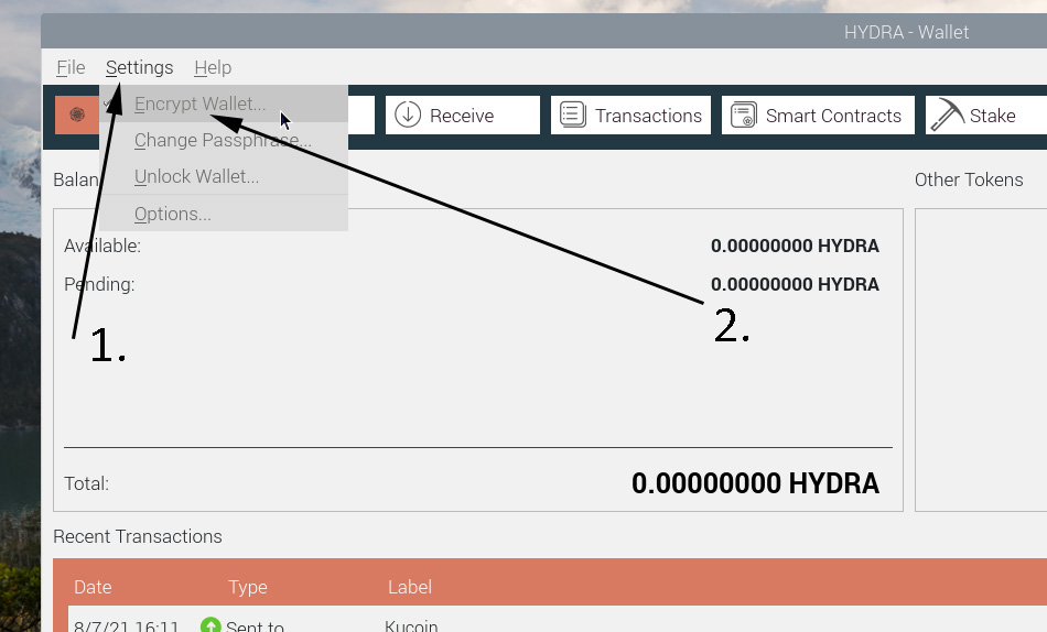 Encrypting the wallet ⇓