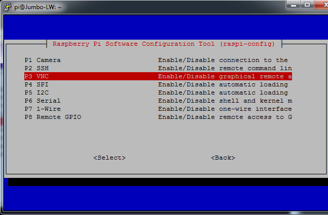 Then Interfacing Options > VNC > Select and confirm "YES" and reboot.