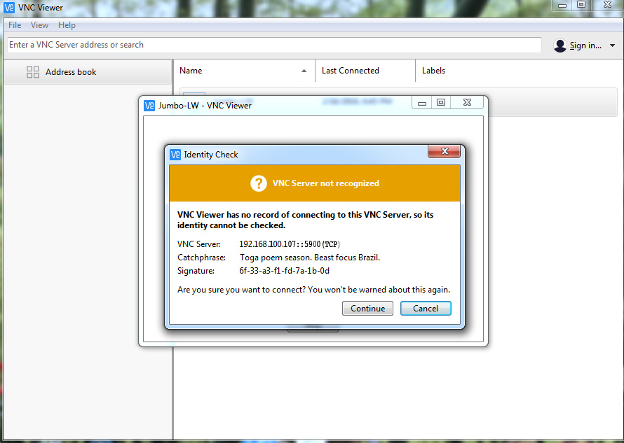 - Install RealVNC viewer (client) on your Windows 7 PC >> RealVNC viewer download.